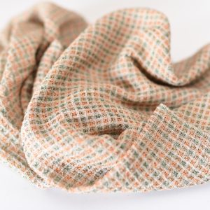 世界でもっとも高価な糸のひとつ、ハスの糸をシルクの糸にからませて織り上げたマスクメロンのファブリック。